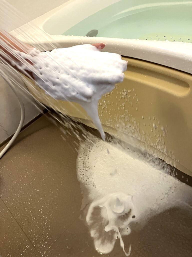 シャワーと一緒に温かい泡が出てくるので、冬場のお風呂でも寒さを感じることなく洗身が可能です(^^)