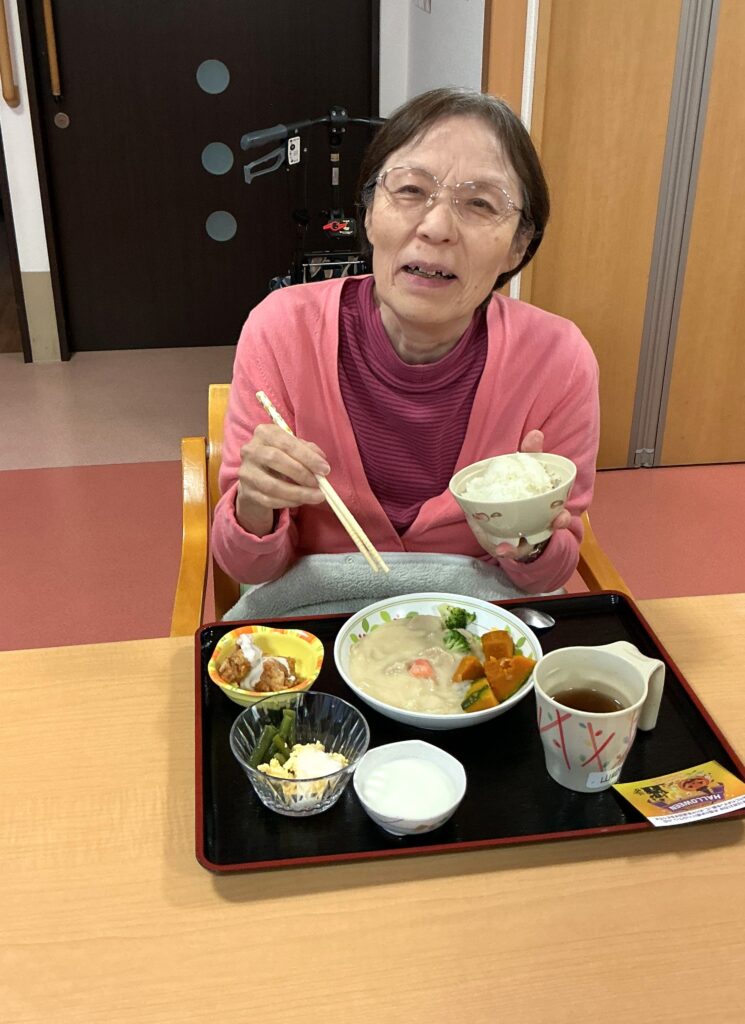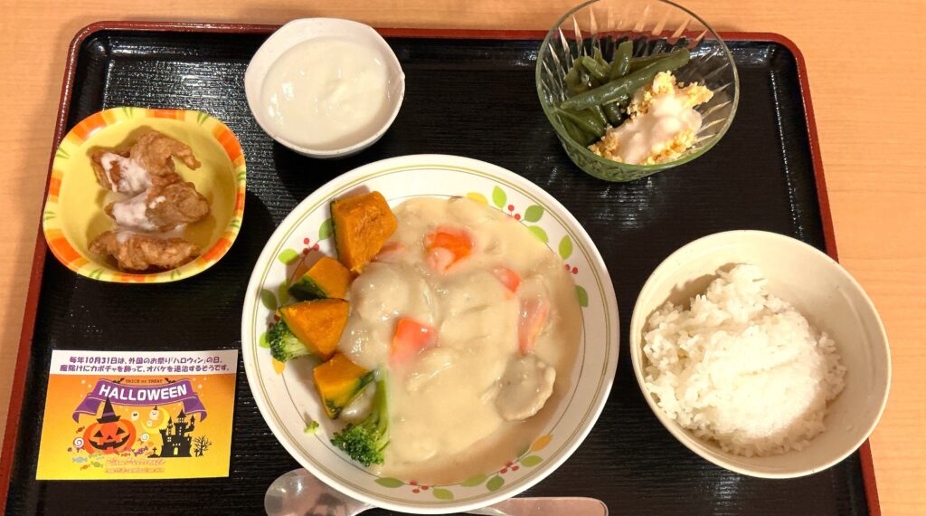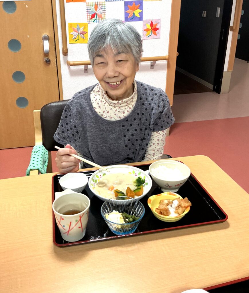 この日の昼食は、かぼちゃの豆乳シチューです☆