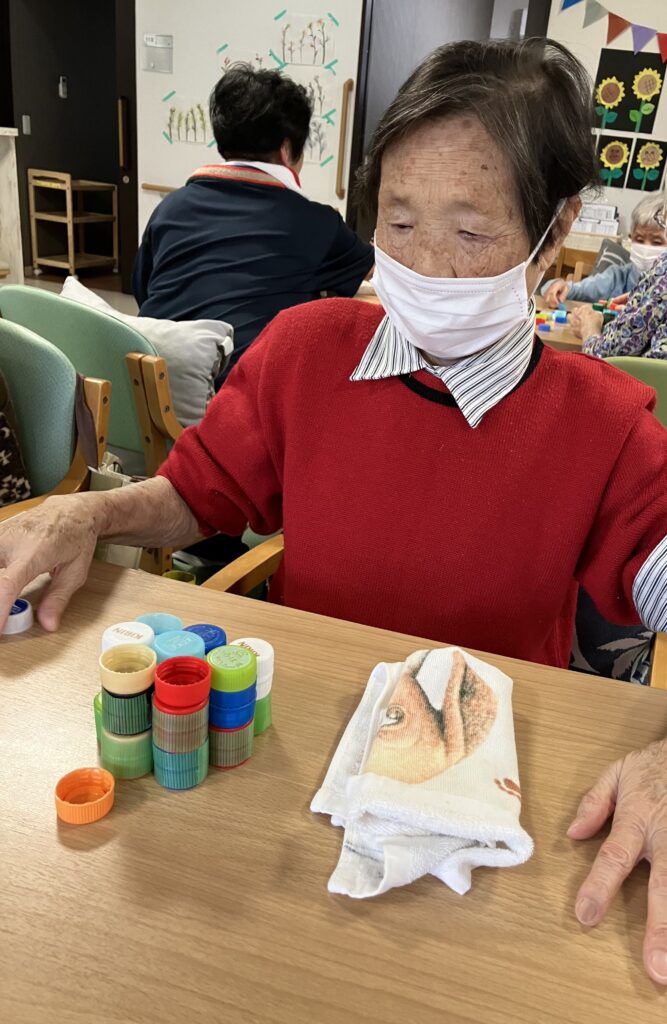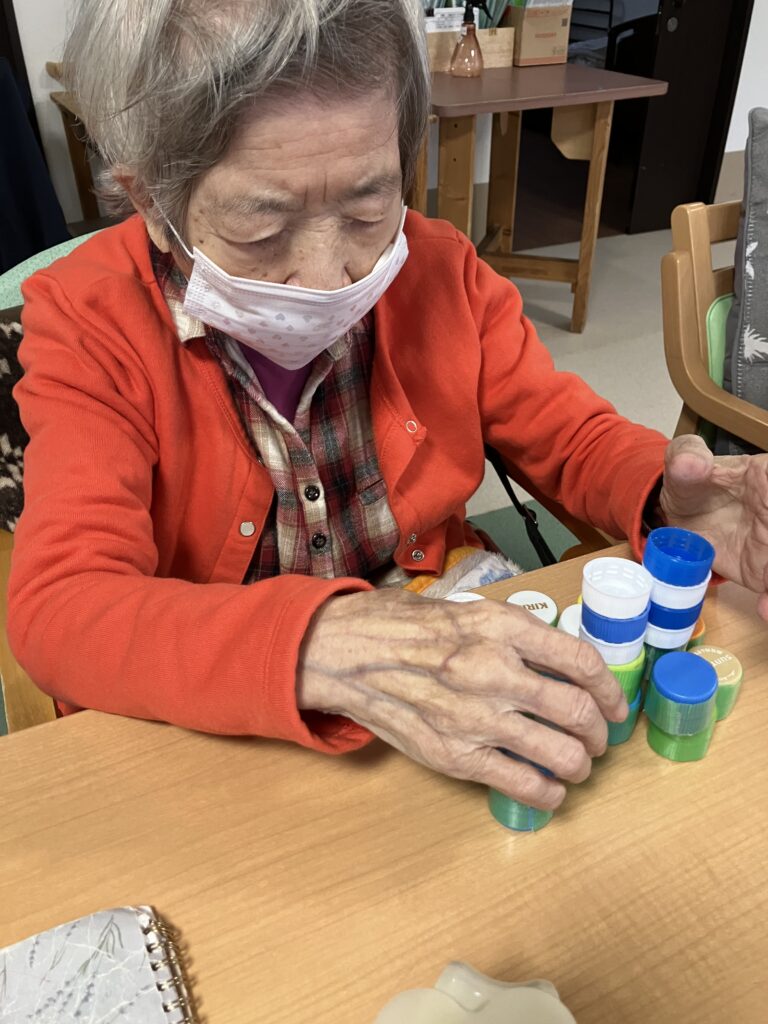 2025年11月17日 沙羅の樹小多機 レクリエーション こんにちは(/・ω・)/ 小規模多機能のとある日のレクリエーションの様子をご紹介いたします! 今回は、こちらの色とりどりのキャップを使っていきます♪ 案外バランスをとるのが難しいので慎重に…慎重に…積んでいきます 「難しそうやね。がんばってや~」 「順調でしょ?頑張るで~」 「結構積めたやろ😎」 「わ!凄~い!!😲」 と、周りの方々から拍手が沸き起こっていました☆ 前の記事消防訓練🧯2025年11月2日 次の記事お散歩♪2025年11月19日