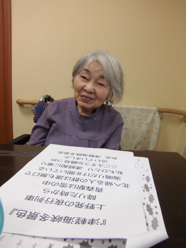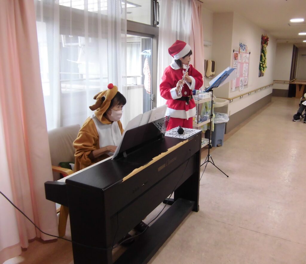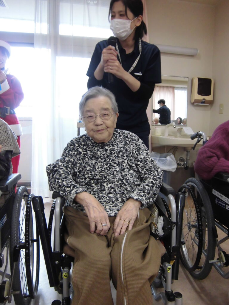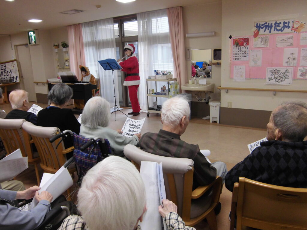 サンタとトナカイの可愛いコスチュームで登場され、入居者様も「クリスマスやなぁ~♪」と季節を感じておられました。
